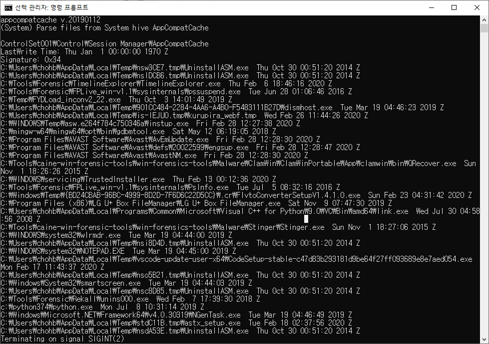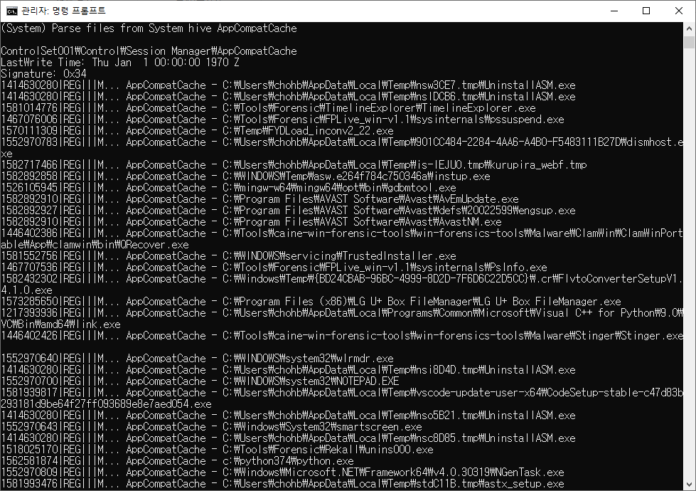 F:\temp>f:\tool\forensic\ShimCacheParser\ShimCacheParser.exe -l -o f:\temp\ShimCache.csv