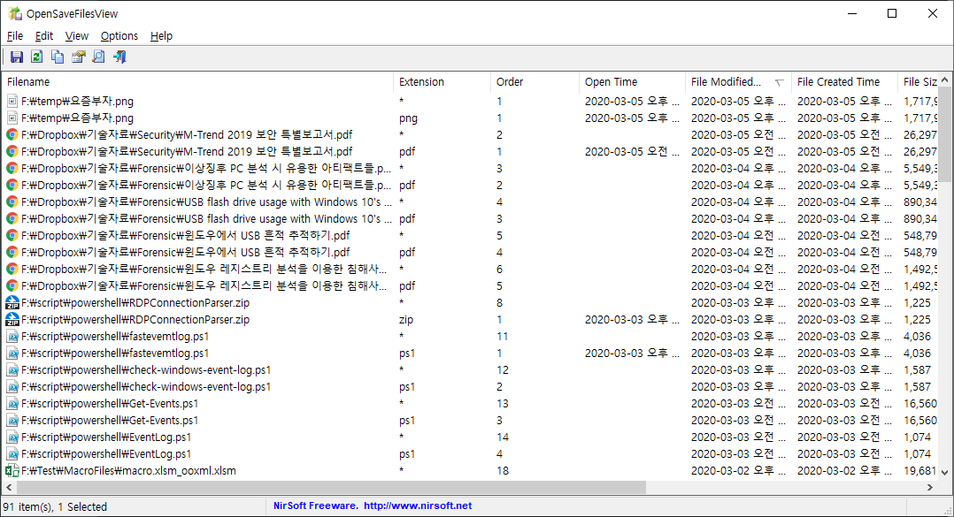 단, 어떤 프로그램의 대화 상자을 통해서 열엇는지는 알 수 없다. 이 정보는 LastActivityView 도구나 $MFT, $Usnjrnl, $Logfile 분석을 통해 확인할 수 있다.