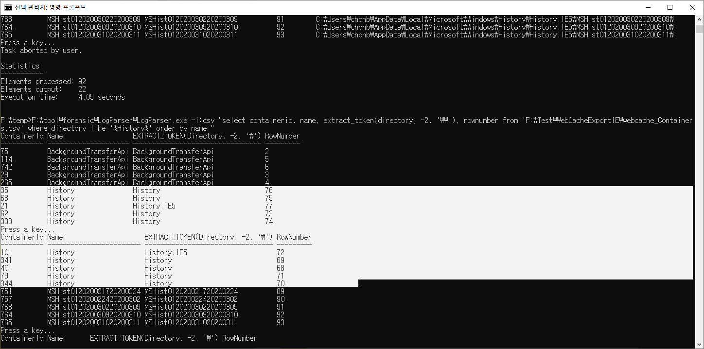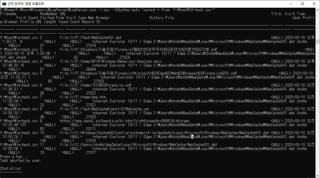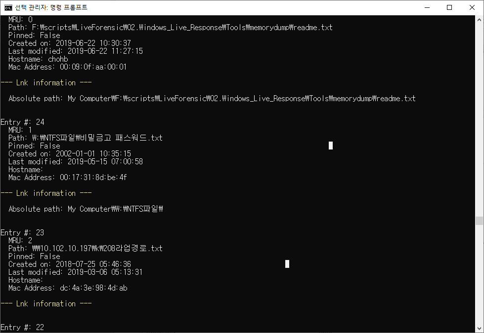F:\tool\forensic\jumplistsview>F:\tool\forensic\JLECmd.exe -d c:\Users\chohb\AppData\Roaming\Microsoft\Windows\Recent\AutomaticDestinations all