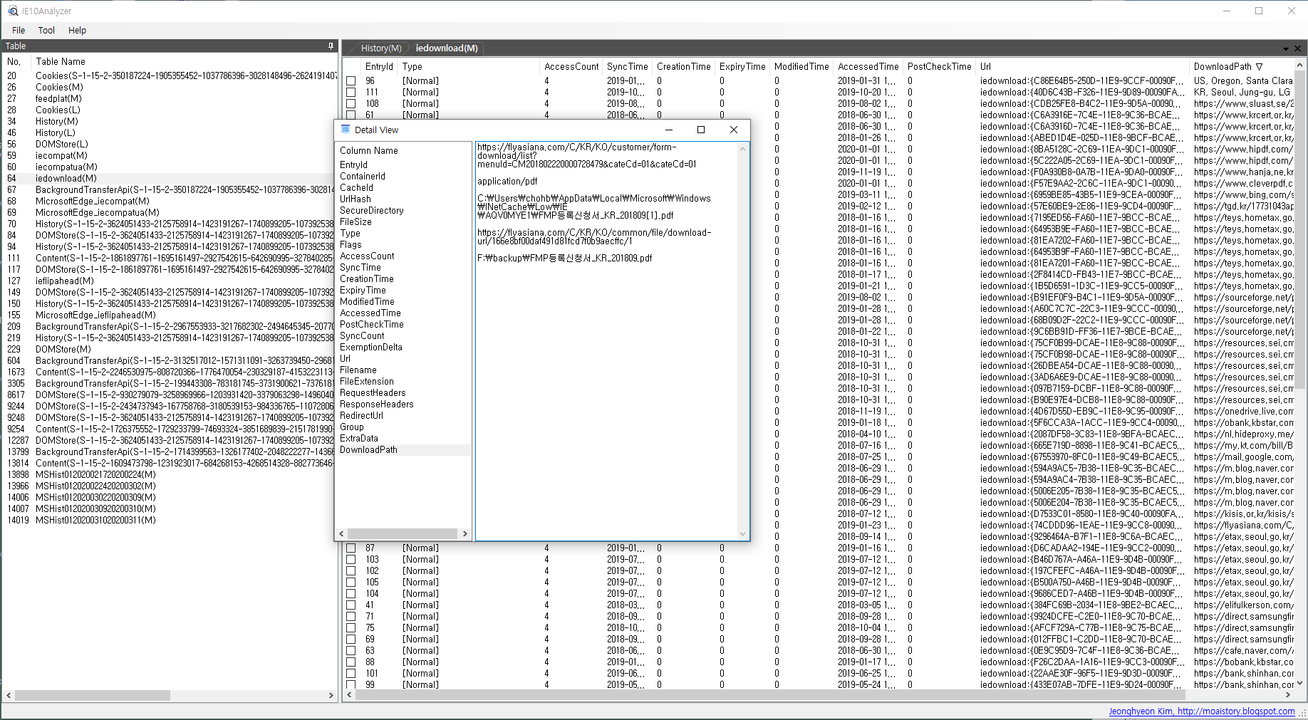 파일명 구성 : 앞의 16글자는 Application ID로 각 App에 해당하는 ID를 띄고 있으며 각 파일의 내부를 확인해보면 여러 항목들이 존재하는 것을 확인할 수가 있다. 이러한 App ID는 http://kali-km.tistory.com/entry/Jump-List-App-ID 에서 Ctrl+F로 찾아서 어떠한 프로그램의 점프 리스트 목록인지 확인할 수가 있다.