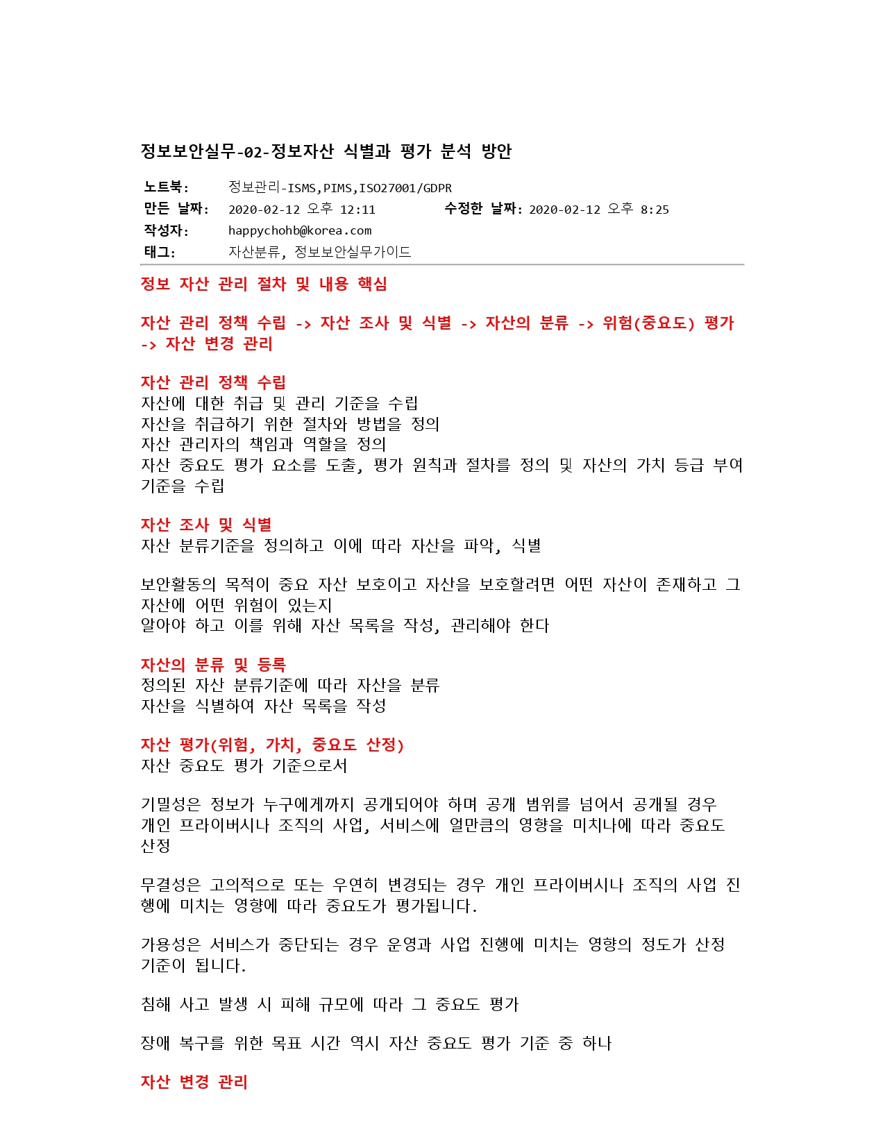 | 정보보호실무-02-정보자산 식별과 평가 분석 방안 (0) | 2023.07.25 |
