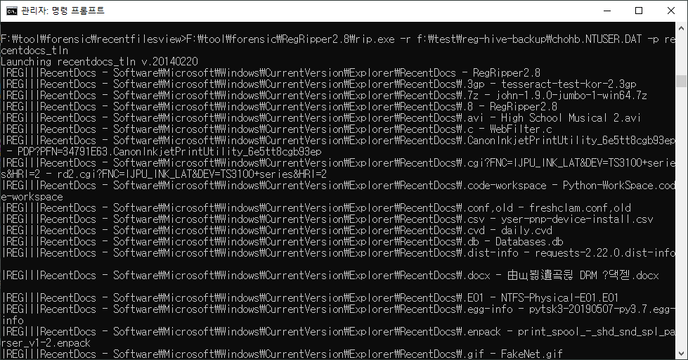 F:\tool\forensic\recentfilesview>F:\tool\forensic\RegRipper2.8\rip.exe -r f:\test\reg-hive-backup\chohb.NTUSER.DAT -p recentdocs_tln