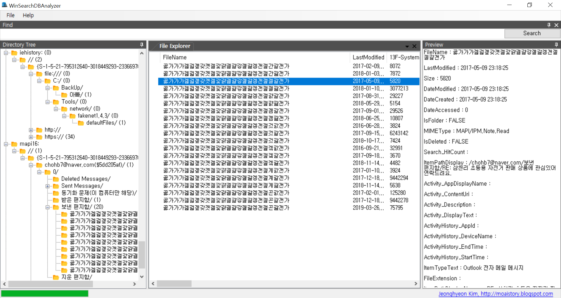 nirsoft사의 esedatabaseview나 ESEViewer로 확인