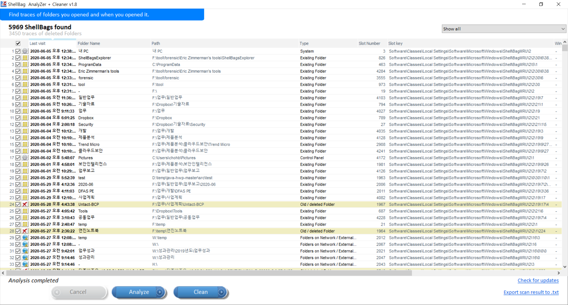 현재 삭제된 디렉토리에 대한 열람 및 접근 등의 과거 행위도 남아 있으므로 포렌식 관점에서 중요한 의미가 있다.
