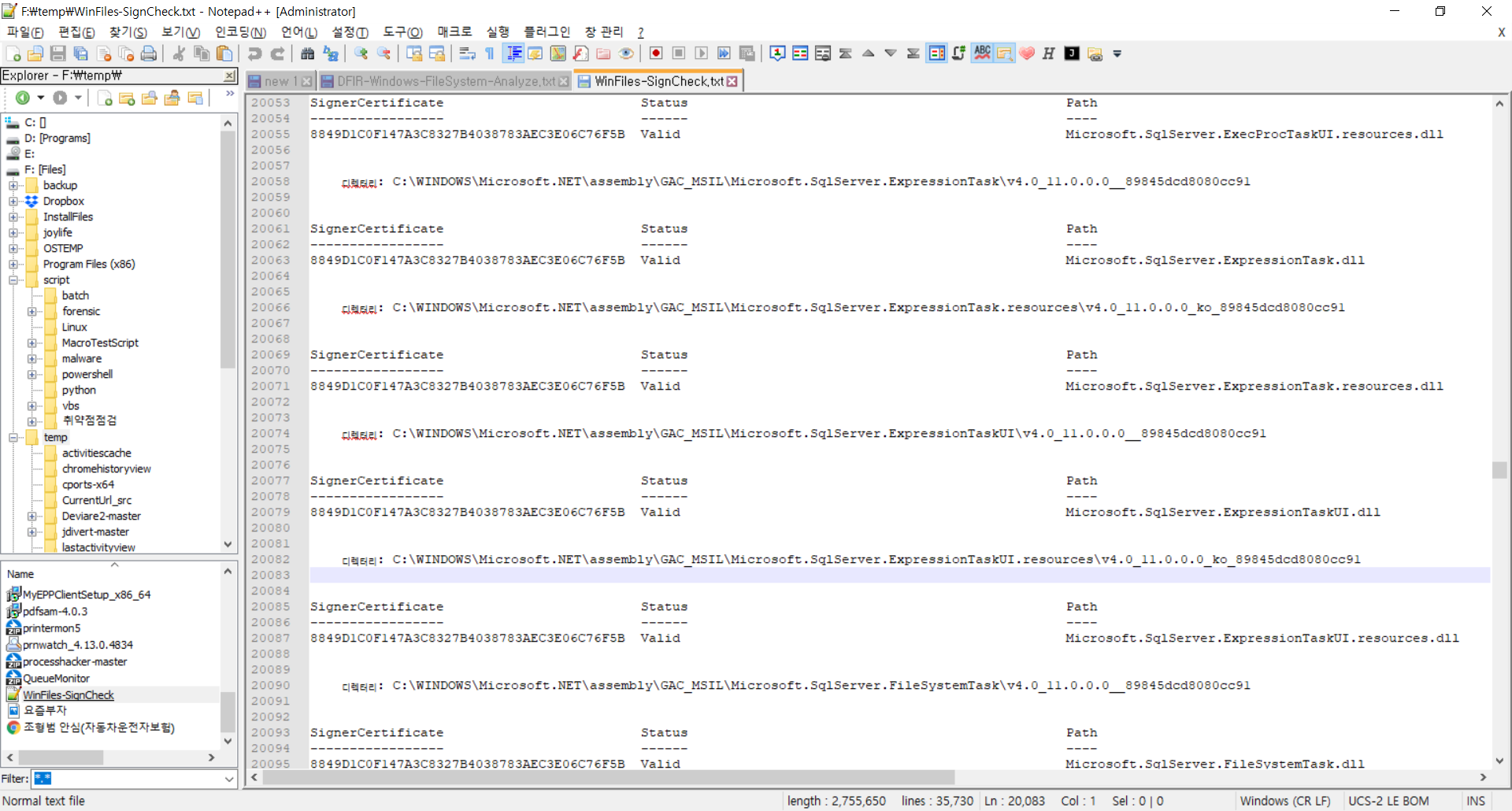 Windows Directory 파일의 서명 여부 확인