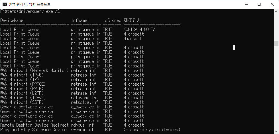 F:\temp>driverquery.exe /SI
