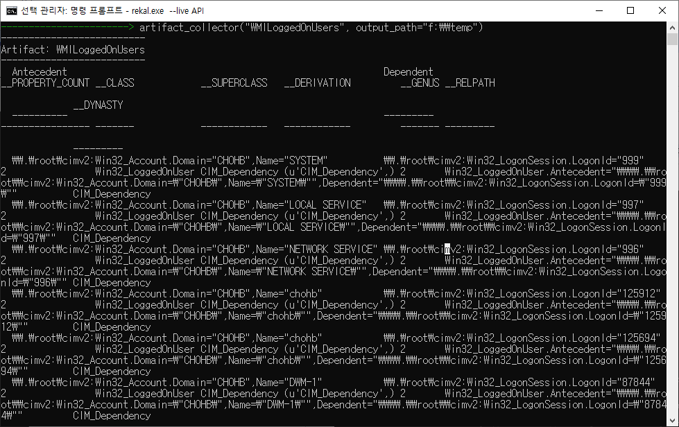 분석 데이터는 최근 사용자 TimeLine 분석(https://secuworld.tistory.com/16) 을 통해 확인할 수 있다.