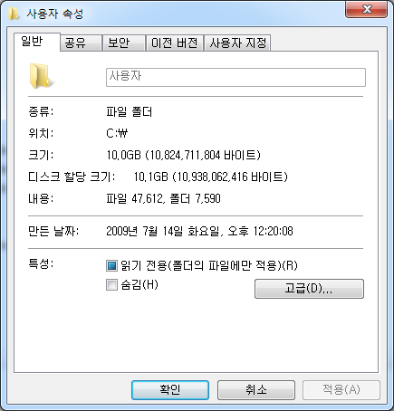 사용자(Users)\Default 폴더 생성일은 2012-04-05이다