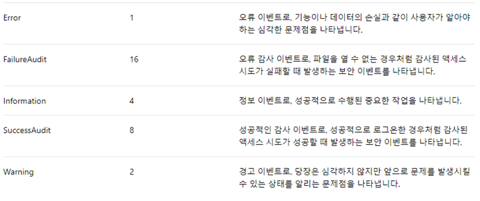 Window OS에서 제공하는 이벤트 뷰어(eventvwr.msc)를 톻한 윈도우 이벤트 로그 분석